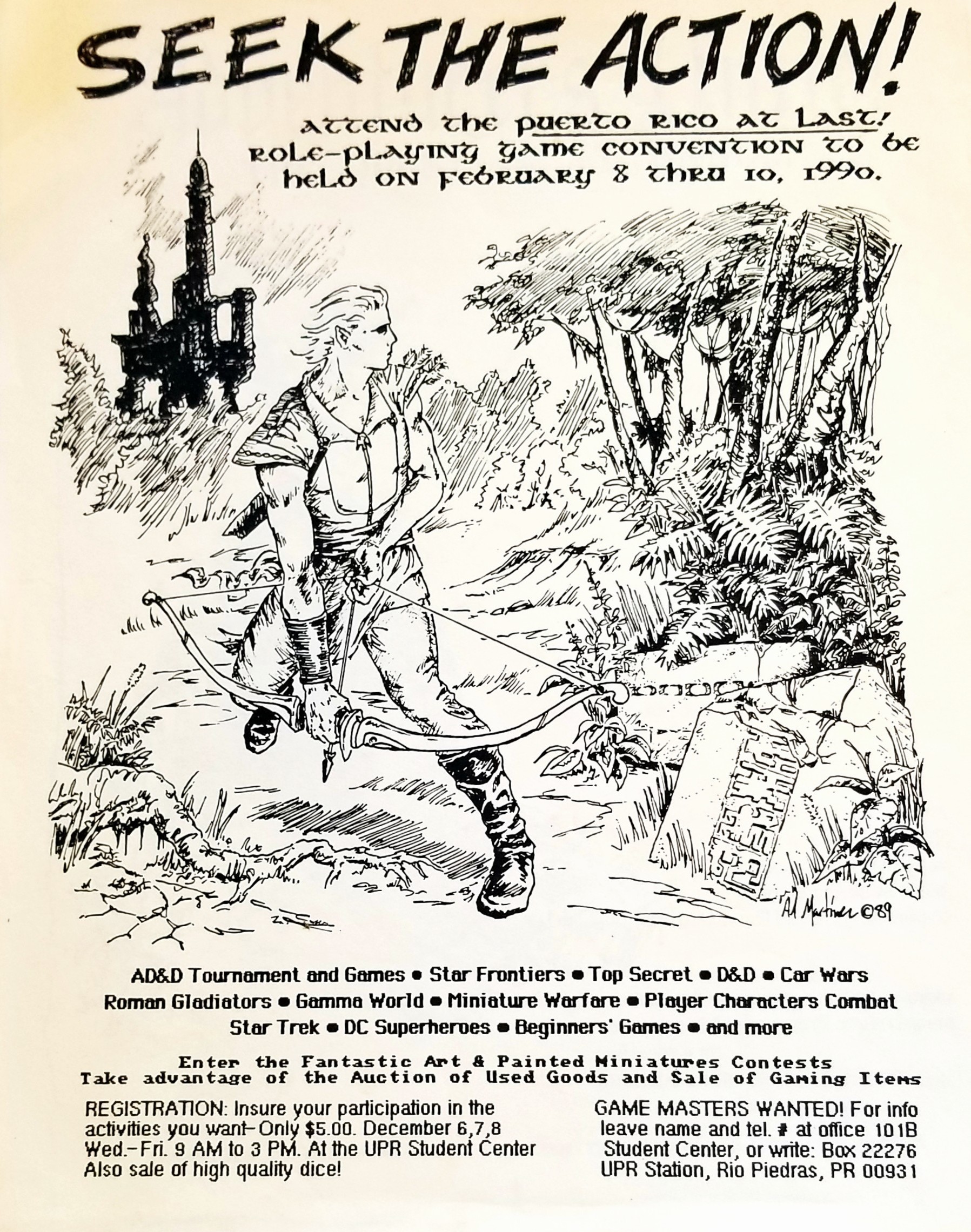 Based on Alberto’s records, planning began in 1988, with a pre-convention meeting in May 1989. The event, titled Puerto Rico at Last, finally took place from Thursday, February 8th to Saturday, February 10th, 1990. The University of Puerto Rico Student Center was the point of contact for the original organizer, Henry Miller. Tickets went on sale in early December for just $5, which covered participation in all events.