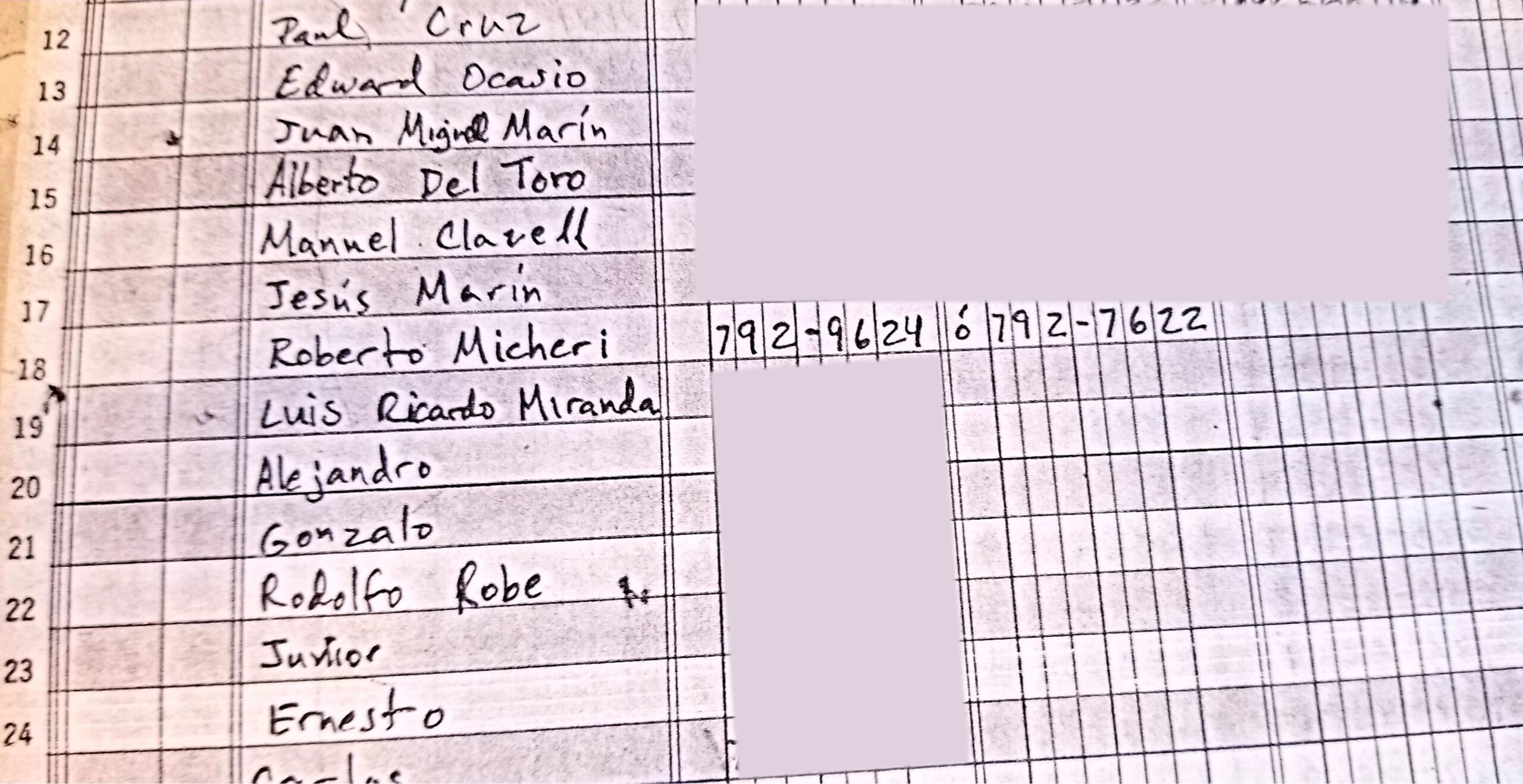 Dr. Martínez showed me the organizers’ contact list. Looking at it 36 years later, I recognize the names of friends who went. In fact, someone must have put my name down for future contact, because there I am: my name, my home phone, and even my grandparents’ number.