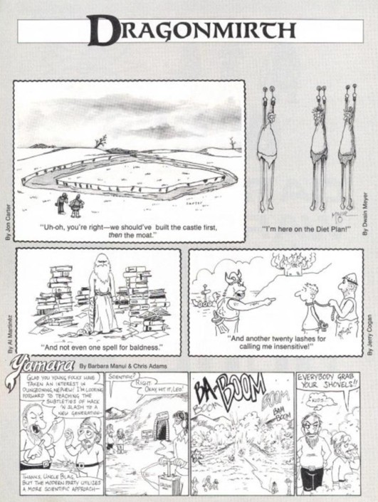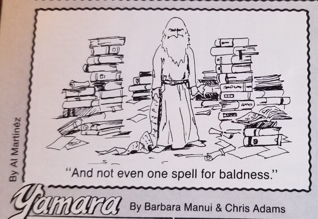 I need to thank Alberto Martínez (who went on to become a professor and author—check him out at scientifichistory.com) for his generosity in sharing these archives. A fun bit of trivia: Alberto also had a cartoon published in Dragon #163 in the “Dragonmirth” section, right above the long-running strip Yamara!