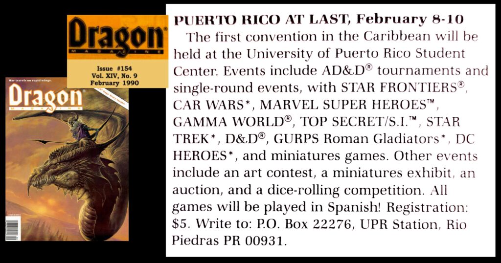 Did you know that Puerto Rico hosted a dedicated TTRPG convention way back in 1990? To my knowledge, it was the first—and perhaps only—event of its kind at that time.