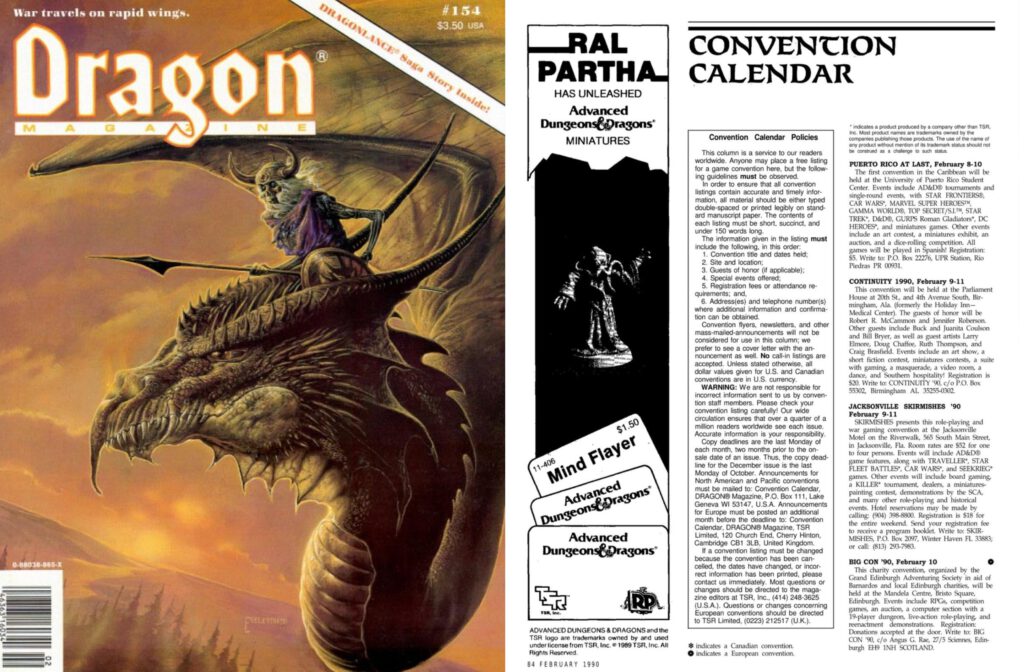 They even managed to get listed in Dragon Magazine #154’s Convention Calendar.