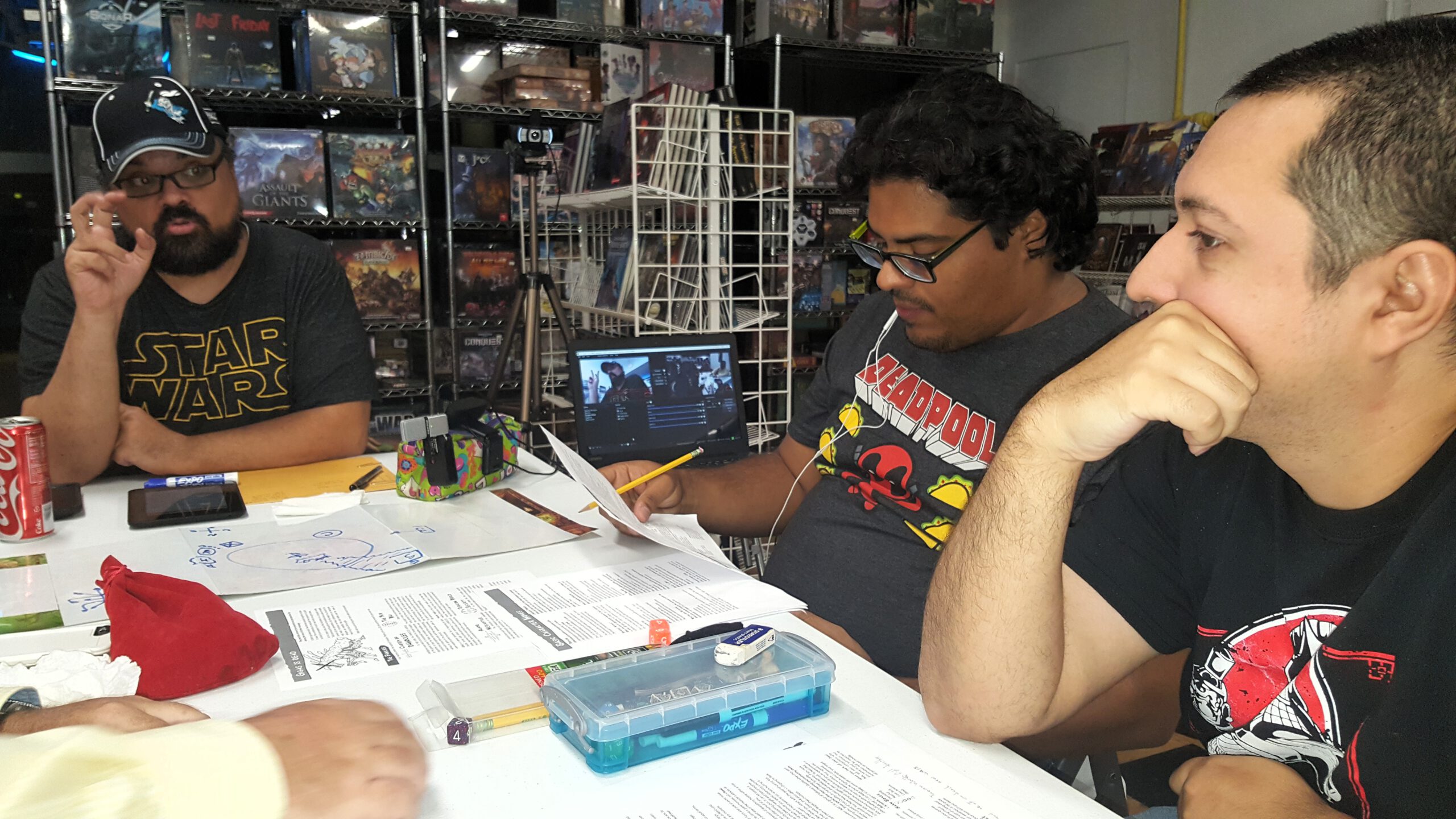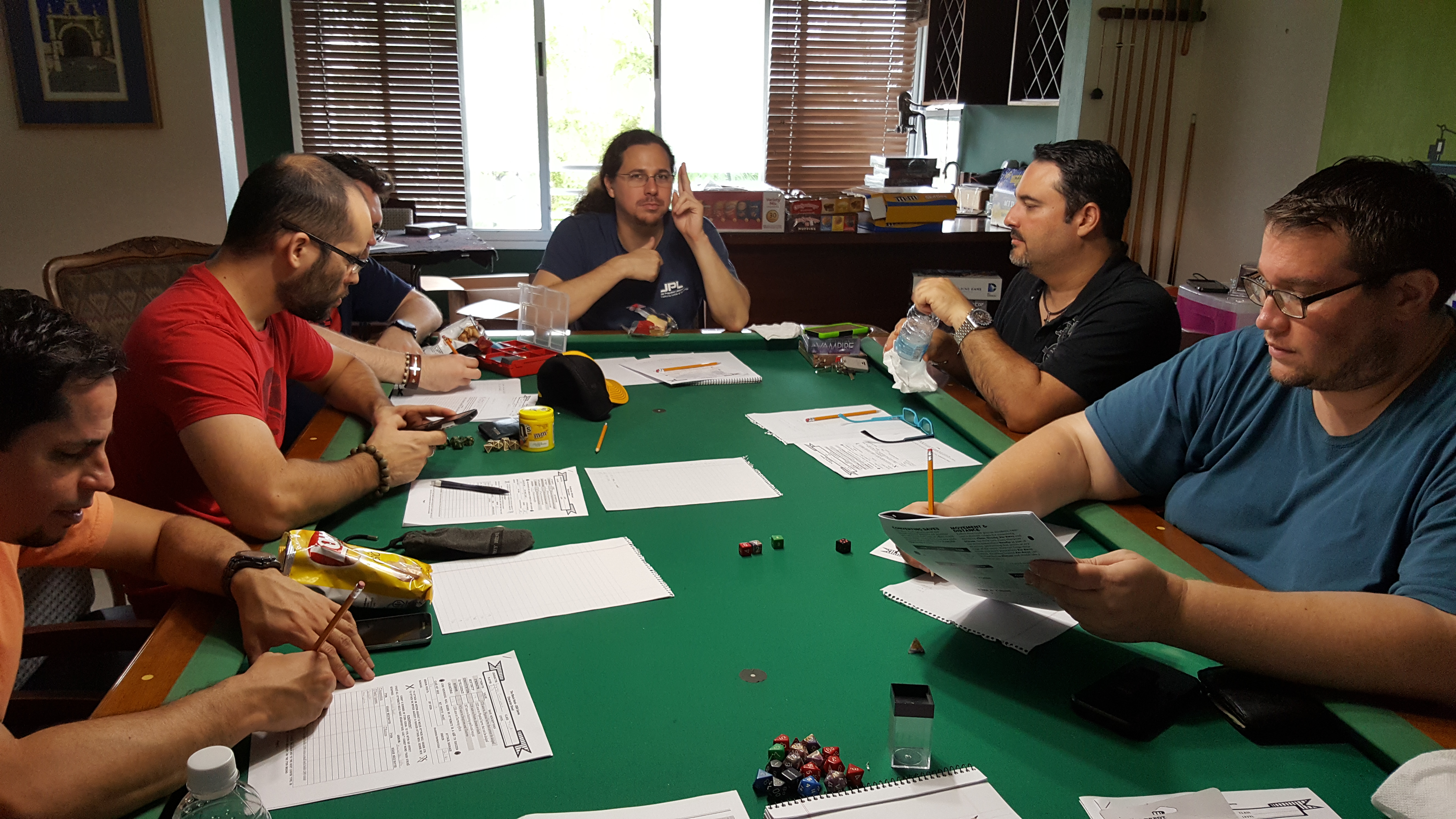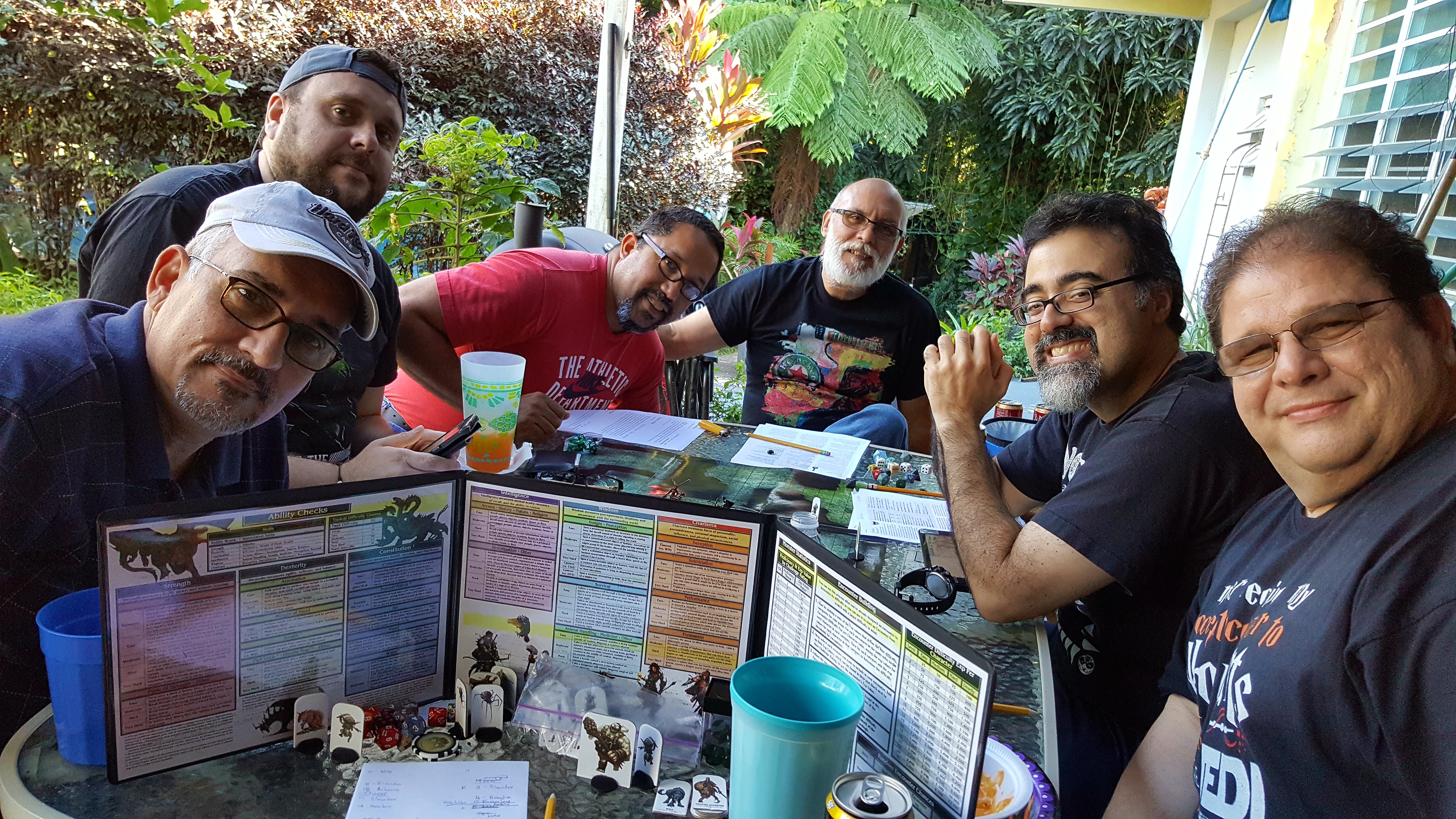 Throughout all these years, we had friends who visited and played guest characters, like PJ Deyo and Luis Miranda, who played in the pirate campaign (Luis came back for the 5th edition campaign as well). Javi Vidal joined us briefly for the campaign but had to move on shortly after. Mariana and Edgardo moved to the other side of the island and would connect to the game online to play with us.