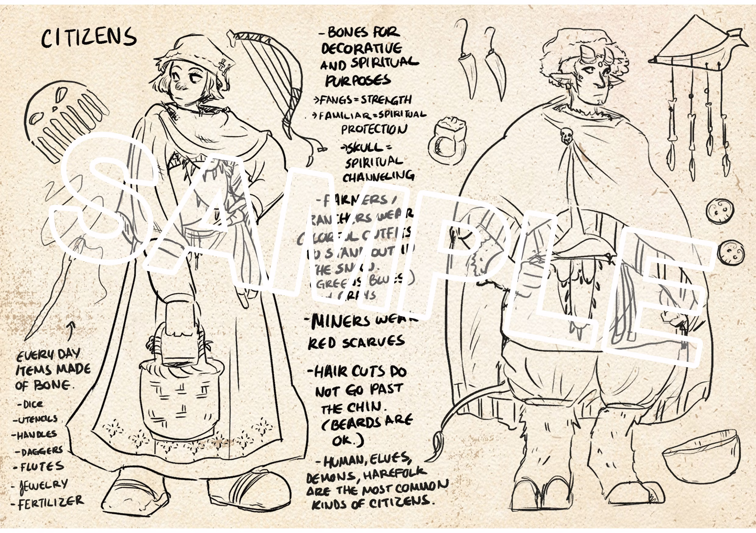 The first book is an overview that explores worldbuilding, history, flora, fauna, and some NPCs, and offers the necessary tools to inspire DMs and players in their campaigns. With the rise and normalization of thoughtless and effortless AI slop, I’m really hoping this book inspires people to read and to add their own take to my work, create their own interpretation, and try to build something of their own without a machine, no better than an undead, to do the thinking and working for them. I think anyone can be a storyteller, and TTRPG’s popularity is proof of it. I want more human stories! The book is a tool by creatives for creatives, and it really tries to cover as much anthropological background and art as I can in 106 pages.