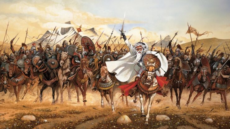 I don’t recall if I consciously knew Achilleos’ work before becoming obsessed with those cards. I had probably seen some of his Lord of the Rings pieces. I had definitely seen his most famous work—the Taarna Heavy Metal cover and the movie poster—on the record sleeve and later in other related media, but I had NO idea who the artist was.